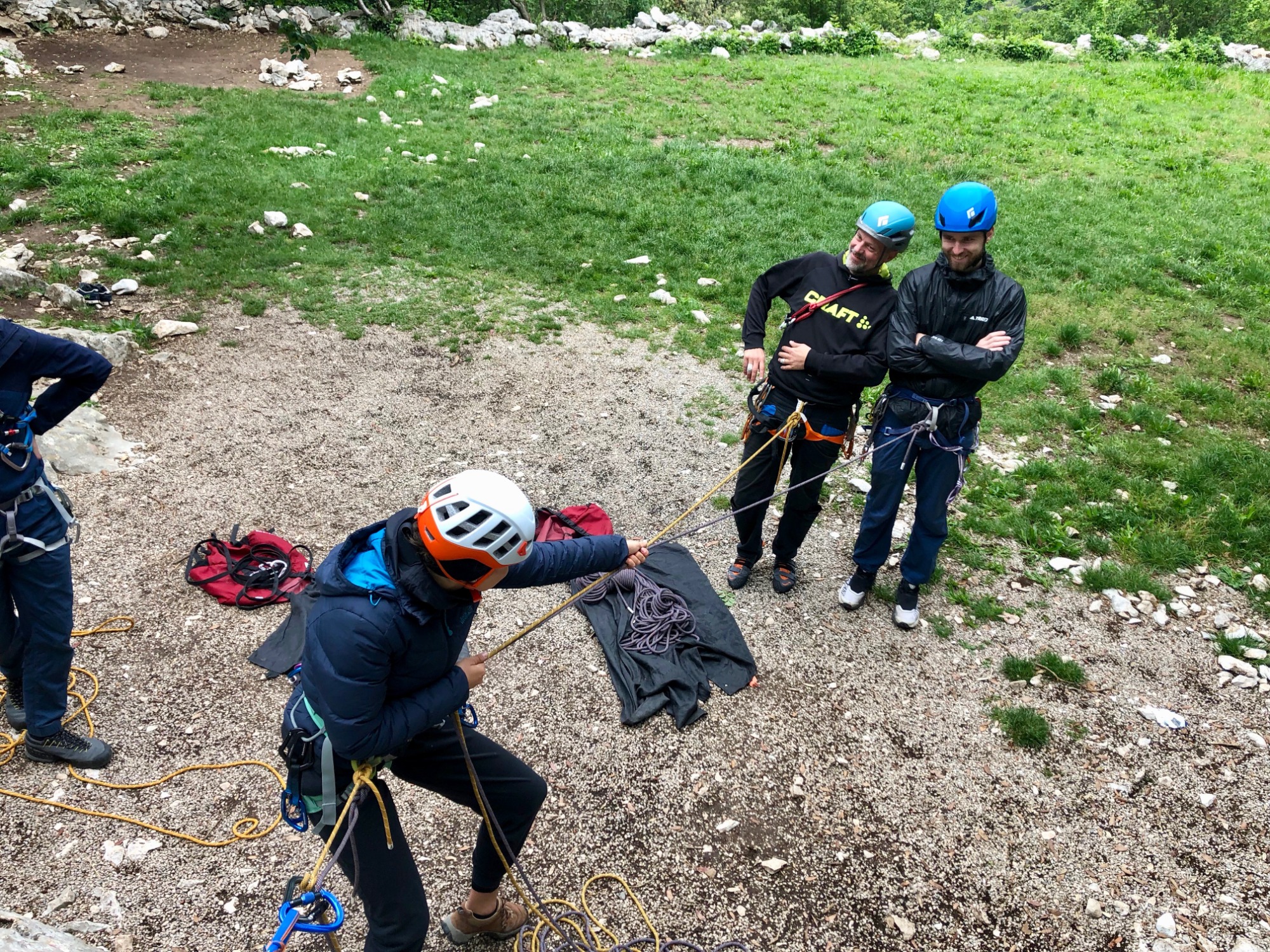 Heute liegt der Fokus auf dem Umgang mit Seiltechniken zur Bergung: Aufbau und Anwendung von Flaschenzügen, die Technik des Körperhubs sowie einfache Methoden, um Lasten oder Personen über kurze Distanzen zu bewegen. Des weiteren stehen heute praxisnahe Erste Hilfe Maßnahmen auf dem Programm.