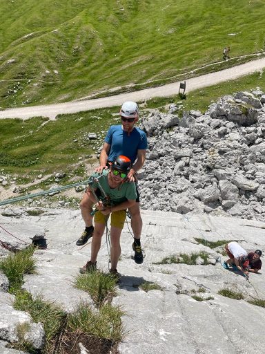 Am dritten Tag werden die gelernten Techniken in realistischen Übungen umgesetzt. Wir trainieren komplette Rettungsabläufe nach oben und nach unten, inklusive Bergung eines „Verletzten“ und Organisation in der Seilschaft. Hier wird Erste Hilfe mit Seiltechnik kombiniert, sodass du die Abläufe realitätsnah festigst und Sicherheit im Ernstfall gewinnst.