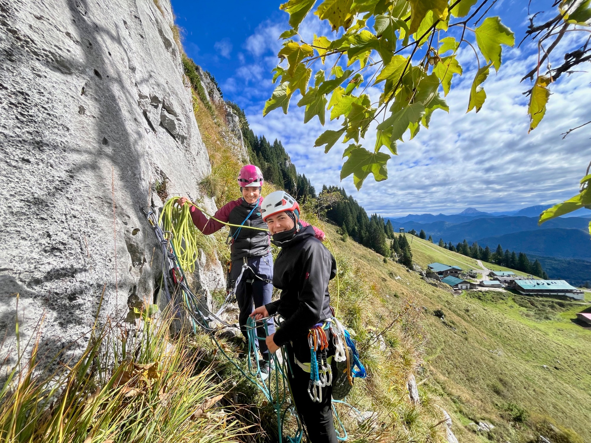 Heute üben wir intensiv den Aufbau von Standplätzen, das effiziente Handling von Halbseilen, Sicherungsgeräten, HMS richtig verwenden und die Kommunikation in der Seilschaft. Ergänzend geht es um das richtige Einrichten von mobilen Zwischensicherungen (Cams, Keile & Co.) und den Rückzug aus alpinen Touren.