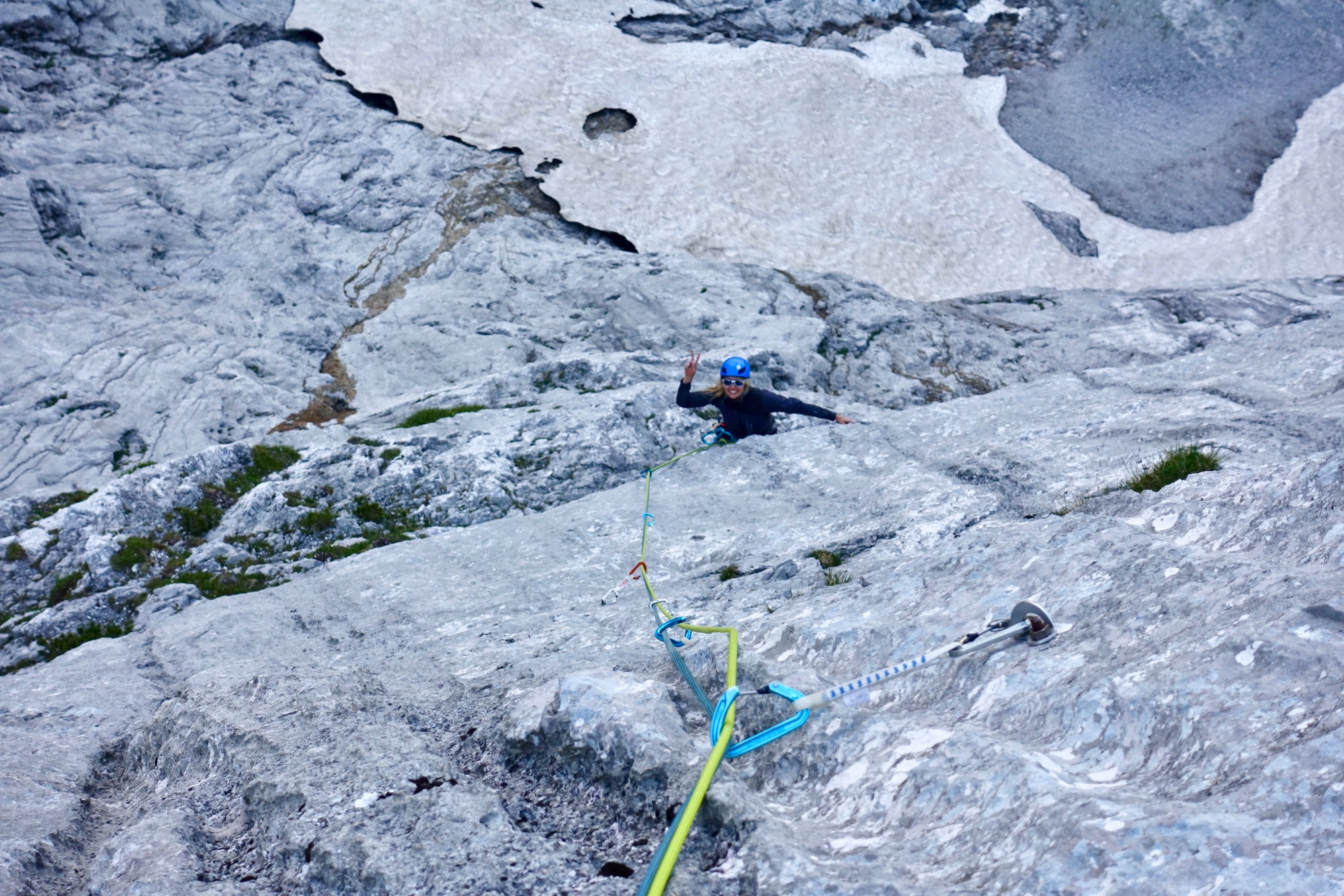Gemeinsam auf Tour optimieren wir euer Klettern in alpinen Mehrseillängen. Wir verfeinern euren Standplatzbau-Skills, verbessern euer Seil- und Zeitmanagement, schulen eine klare Kommunikation in der Seilschaft und besprechen taktische Entscheidungen. Ziele sind ein effizienteres Klettern, ein sicher Umgang mit mobilen Sicherungsmitteln (Cams, Keil & Co.), sowie die Verfeinerung alpiner Rettungstechniken für unerwartete Situationen.