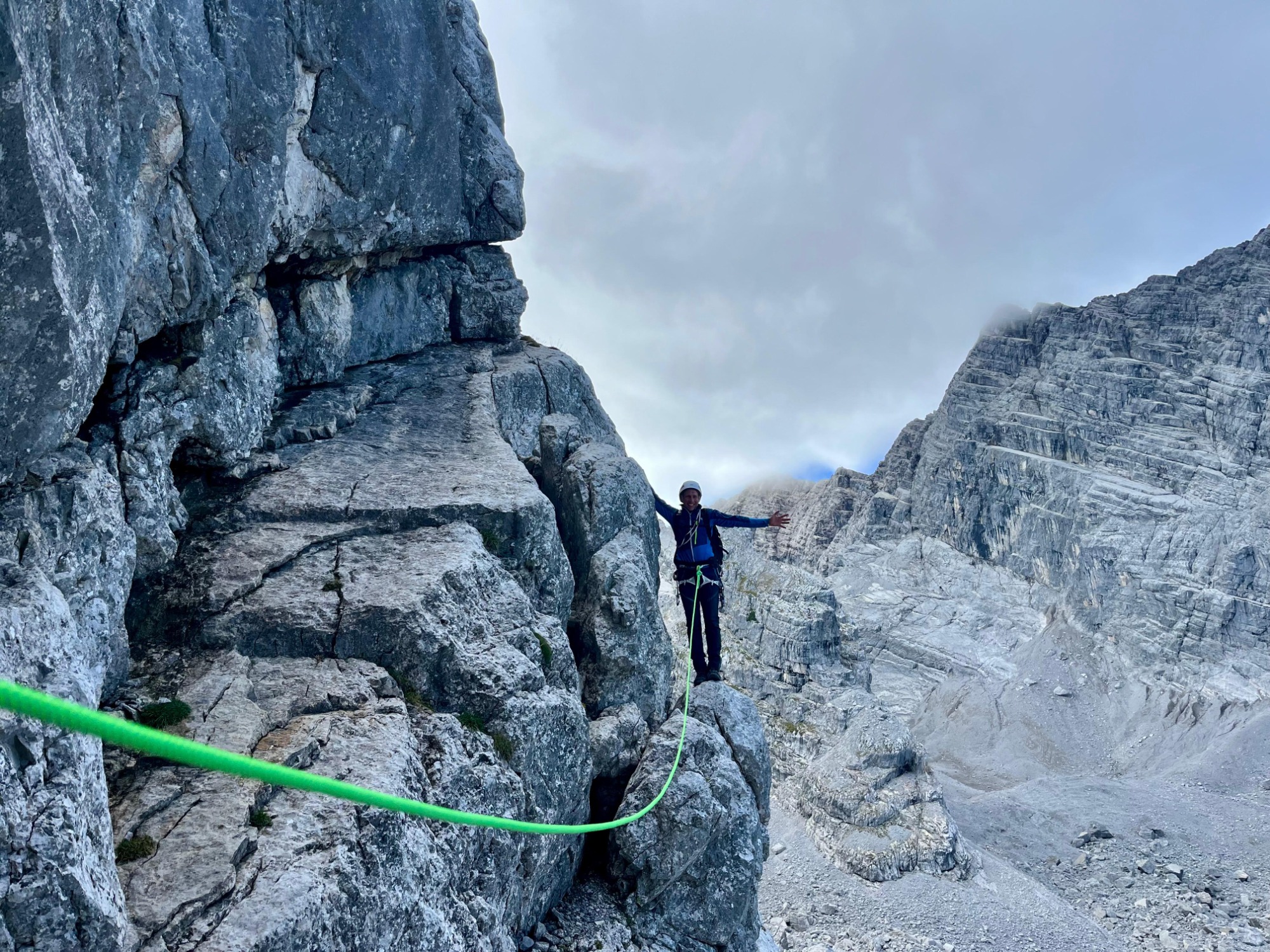 Zum Einstieg klettern wir an den Cinque Torri – perfektes Übungsgelände mit kurzen Zustiegen und vielen gut gesicherten Mehrseillängen. Hier wiederholen und festigen wir die Grundlagen: Standplatzbau, Seilmanagement, Klettern in der Seilschaft, Abseilen sowie grundlegende taktische Entscheidungen.