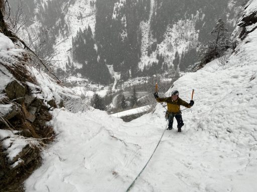 Zum Abschluss nutzen wir noch einmal die Linien am Barbarafall oder Hauptfall – je nach Verhältnissen. Hier kannst du das Erlernte frei anwenden, Sicherheit gewinnen und weitere Klettermeter sammeln. Gemeinsam beschließen wir den Kurs und treten die Rückreise ins Tal an.