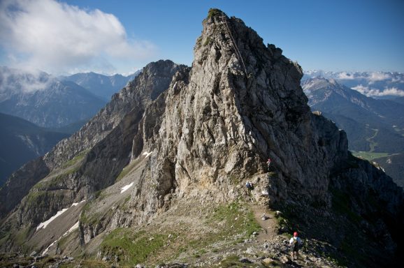 Eine der schönsten und eindrucksvollsten Gratwanderungen in den nördlichen Kalkalpen. Hoch über Mittenwald führt der durchgehend versicherte Klettersteig über luftige Felsgrate und bietet dabei ein unvergessliches Panorama.
