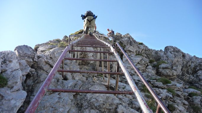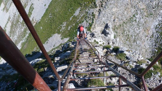 mäßig schwieriger Klettersteig (B) | 300 Hm im Aufstieg und 1.500 Hm im Abstieg | Gesamtzeit ca. 7 – 8h