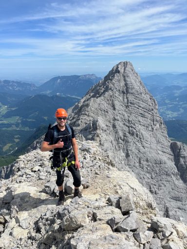 Die Aussicht reicht tief ins Berchtesgadener Land, über den Königssee bis zu den Hohen Tauern – eine Gratwanderung im besten Sinne des Wortes.