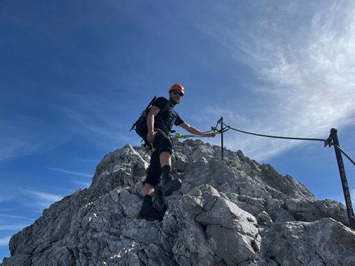 Früh morgens beginnt das alpine Abenteuer: Vom Watzmannhaus geht es über einen Steig zum Hocheck (2.651 m). Hier beginnt die eigentliche Gratüberschreitung . Über die ausgesetzte, aber eindrucksvolle Verbindung erreichen wir die Mittelspitze (2.713 m) – den höchsten Punkt des Watzmanns – und schließlich die Südspitze (2.712 m).